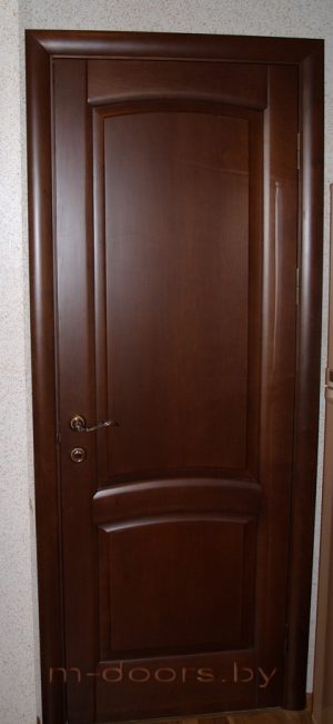 Дверь из цельного массива. Окрашенная в любой цвет (полиуретоновыми итальянскими лаками или красками). Дверное полотно красится в разборе, что предотвращает появление непрокрашенных мест в процессе эксплуатации. Двери изготавливаются только из сухого дерева, прошедшего техническую сушку. Любые размеры полотен. Цена указана за полотно, коробку и наличник из массива.