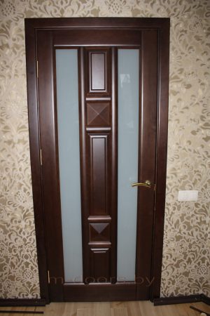 Дверь из массива без микрошипа. Окрашенная в любой цвет (полиуретоновыми итальянскими лаками или красками). Дверное полотно красится в разборе, что предотвращает появление непрокрашенных мест в процессе эксплуатации. Двери изготавливаются только из сухого дерева, прошедшего техническую сушку. Любые размеры полотен. Цена указана за полотно, коробку и наличник из массива. Стекло не входит в стоимость и считается дополнительно.